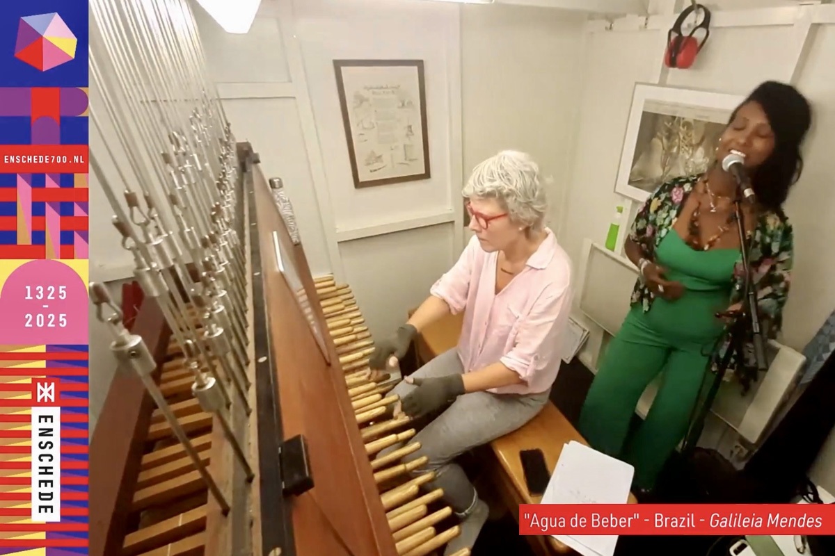Vandaag krijgt het extra glans door de stem van soliste Galileia Mendes, die hier achter me staat en zelf Braziliaanse roots heeft.