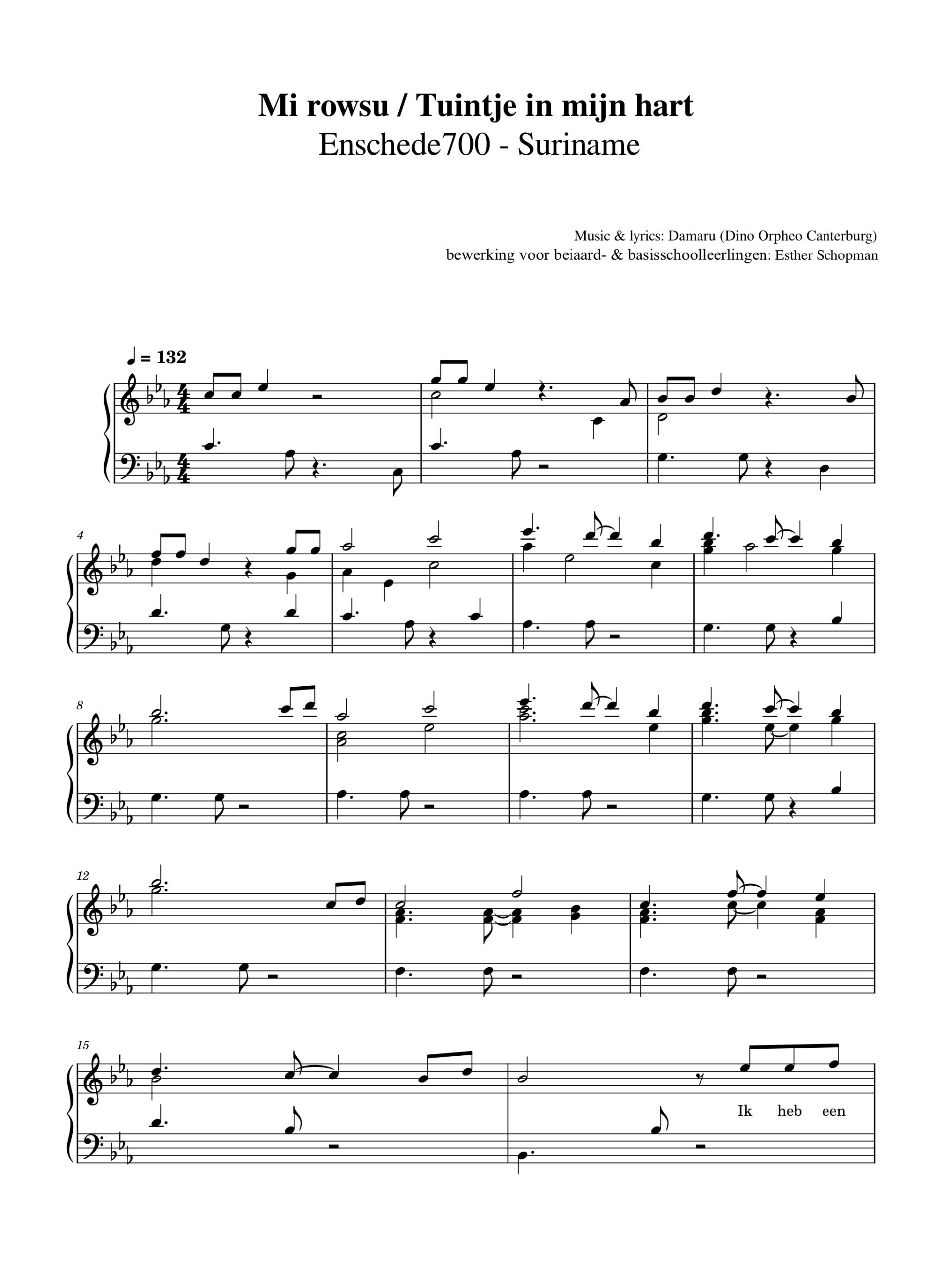 Het lied “Mi rowsu / Tuintje in mijn hart” is een nummer van de Surinaamse zanger Damaru. Hij schreef het voor zijn dochter Dinoura. “Mi Rowsu” betekent “Mijn Roos” in het Sranan Tongo. Het gaat over liefde en toewijding. Danaru zingt dat hij een “tuintje in zijn hart” heeft en dat die tuin alleen voor haar is. Dit beeld staat symbool voor een liefde die puur, exclusief en gekoesterd is.